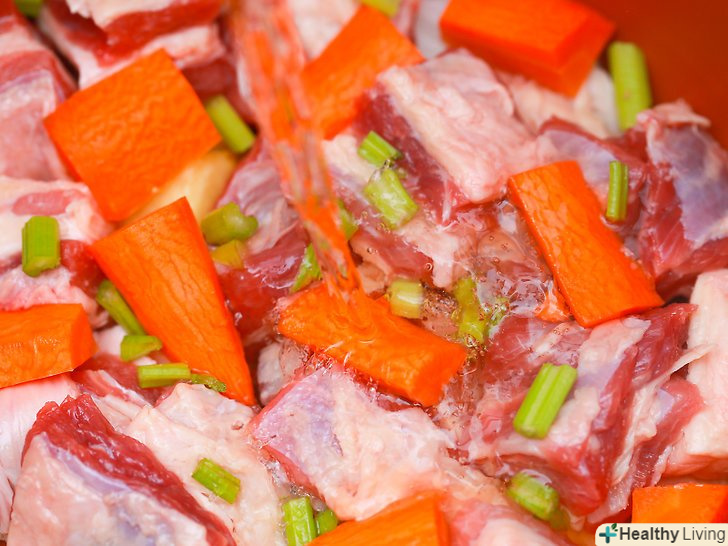 Покрийте каструлю повільного приготування тонким шаром жиру для готування.розпиліть на стінки і дно каструлі жир для готування.- Можна також використовувати підстилку для каструлі повільного приготування. Будь-якого з цих варіантів буде достатньо, щоб запобігти пригорання їжі і полегшити подальше очищення.