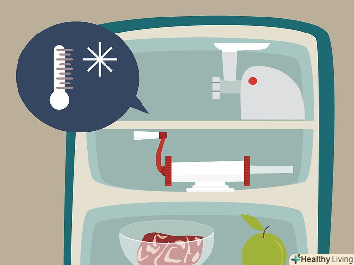 Заморозьте перекручене м'ясо.коли закінчите, накрийте миску і поверніть м'ясо назад в морозильну камеру. Не давайте фаршу замерзнути повністю-тільки зовні. Поки м'ясо замерзає, помийте м'ясорубку і приберіть на місце.
