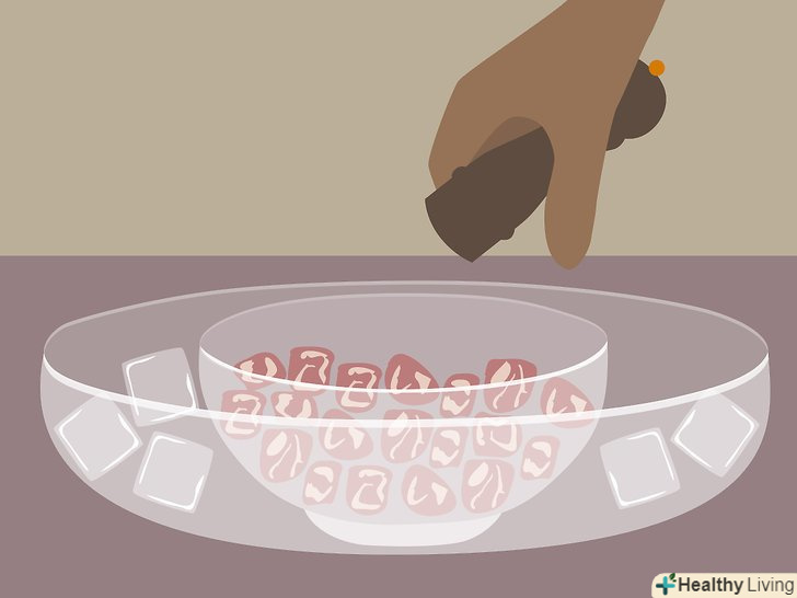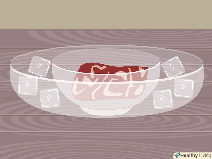 Зробіть ванночку з льоду.наповніть велику миску льодом і помістіть меншу миску всередину. Саме в ній ви повинні тримати м'ясо і жир після того, як наріжете їх. Як було зазначено раніше, якщо м'ясо буде ставати занадто теплим, кладіть його назад в морозильну камеру до тих пір, поки воно не охолоне.