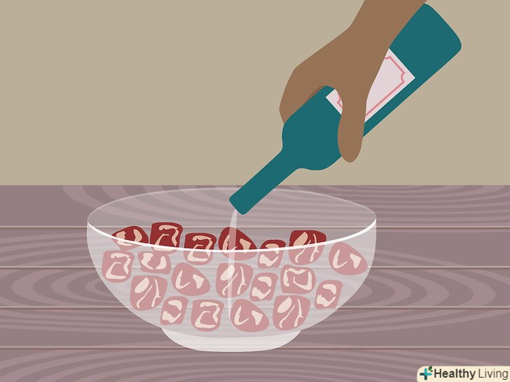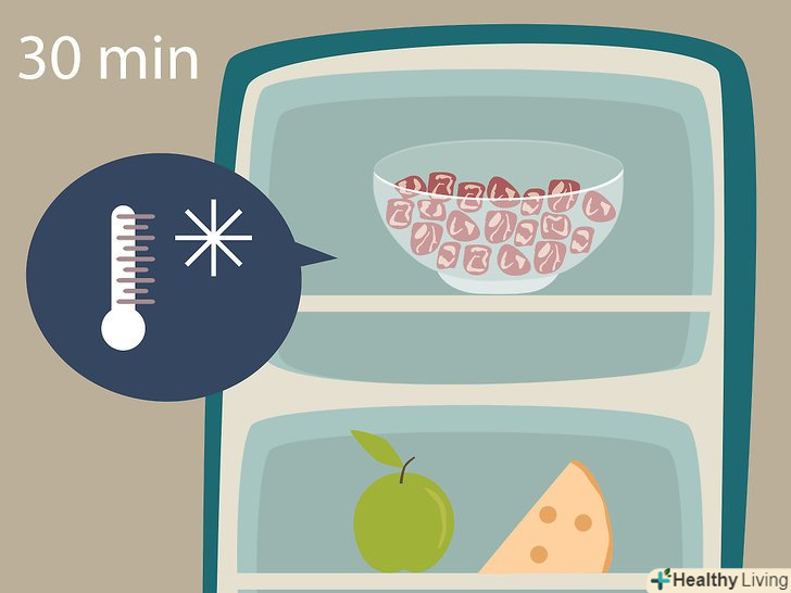 Заморозьте м'ясну суміш на 30 хвилин.не заморожуйте м'ясо більше години перед перекручуванням. Переморожене м'ясо буде складно перекрутити. Воно повинно бути злегка м'яке в середині і Крижане зовні – так м'ясо перекрутиться правильно.- Якщо ви готуєте за рецептом з рідкими інгредієнтами на зразок оцту, хересу або меду, змішайте їх і поставте в холодильник, щоб використовувати пізніше.