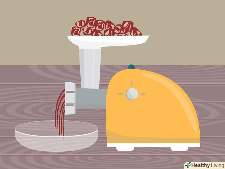 Придбайте м'ясорубку.якщо ви робите сосиски з нуля і плануєте робити це не один раз, вам варто придбати м'ясорубку. Вона дозволить вам подрібнити м'ясо ретельно-саме так, як це потрібно в рецепті. І що більш важливо-м'ясорубка заощадить масу часу.- Деякі кухонні комбайни йдуть з насадкою для перекручування м'яса, яка відмінно підходить для приготування сосисок.