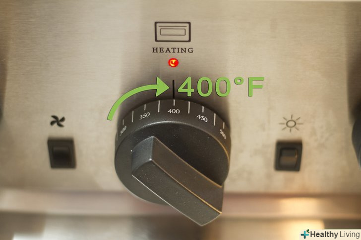 Розігрійте духовкуДо 200 °С. після того, як ви поставили деко в духовку, розігрійте духовку до 200 °С. зачекайте 10-15 хв поки духовка прогріється до потрібної температури. Якщо у вашої духовки є вбудований термометр, можна використовувати його для відстеження температури.[2]- Якщо ви помістіть сосиски Братвурст в попередньо розігріту духовку, то не помилитеся з часом їх приготування, так як зможете засікти час в момент, коли в духовці вже встановиться потрібна температура.