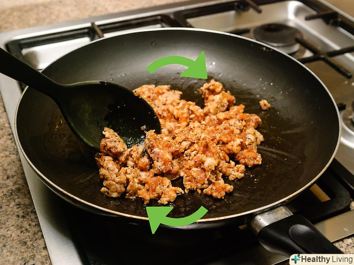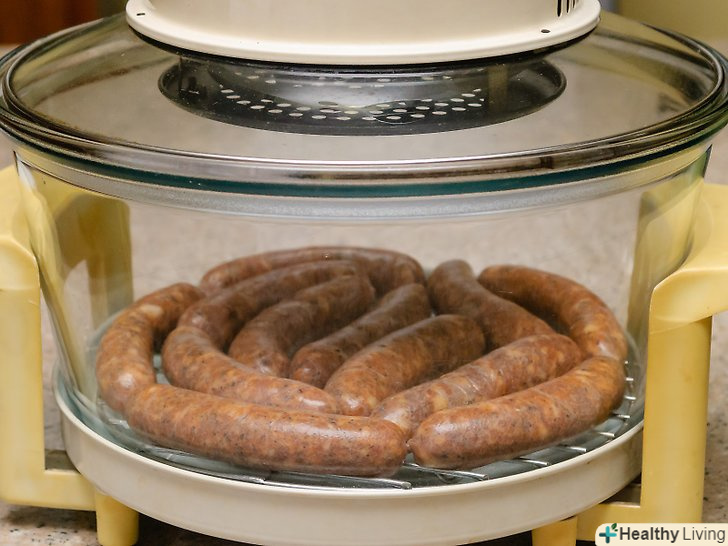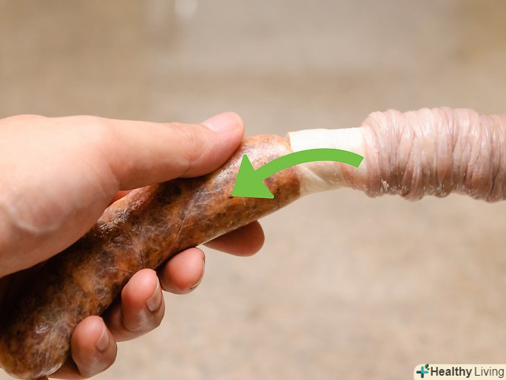 Заповніть м'ясом натуральну або колагенову кишку.Кишки повинні бути приблизно по 4 дюйми завдовжки. Загорніть м'ясо за годинниковою стрілкою і проти годинникової стрілки.