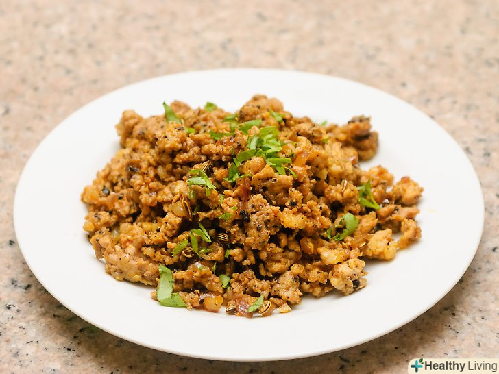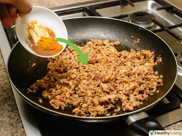 Додайте кмин, коріандр, запашний перець і мелений чилі.для цього змішайте подрібнений кмин (1 ст.л.), подрібнений коріандр (1 ст. л.), запашний перець (1/2 ст. л.), мелений чилі (1/4 ст. л.) і додайте в ковбасу.