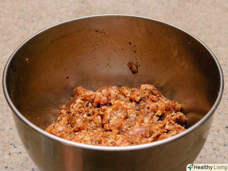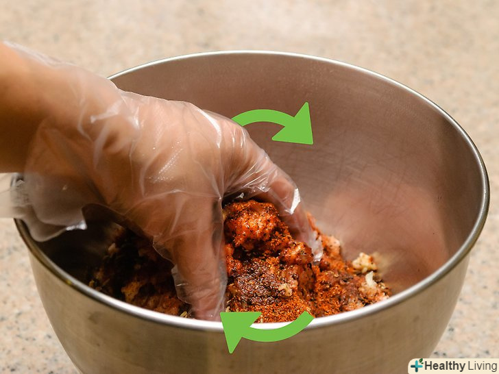 Додайте приправи до м'яса.потім покладіть залишилися компоненти і рівномірно перемішайте їх з м'ясом.
