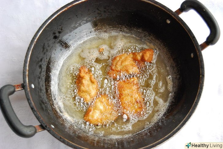 Нагрійте масло на середньому вогні.смажте глибоко в маслі на невеликому вогні три-чотири хвилини, по два-три шматки одночасно, доводячи до золотистого кольору і готовності м'яса.