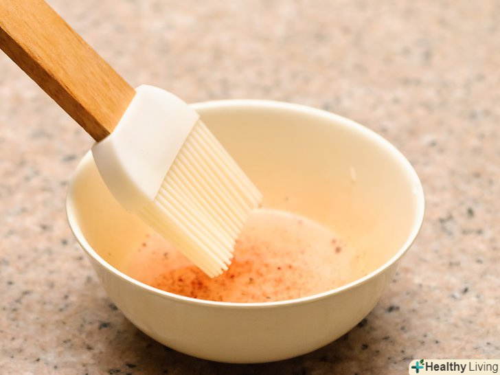 Засолите м'ясо за допомогою маринаду або натріть спеціями.для соковитості і для насиченості смаку м'яса, перед копченням використовуйте розсіл, маринад або спеції. Безумовно, основний смак надає дим, тому не обов'язково використовувати один з цих методів підготовки м'яса, проте, можна додати виразності смаку і зробити м'ясо якомога соковитіше.- Перед копченням, найчастіше, шинку і птицю засолюють. Якщо ви збираєтеся замаринувати м'ясо, приготуйте маринад за рецептом і замочіть в ньому м'ясо на ніч або, принаймні, на 8 годин. Поставте м'ясо в холодильник промаринуватися. Обов'язково вийміть м'ясо з холодильника і зігрійте його до кімнатної температури перед початком процесу приготування.