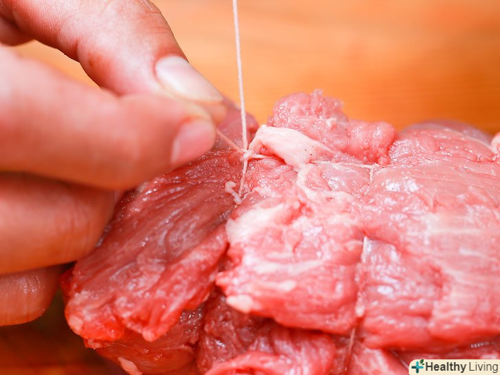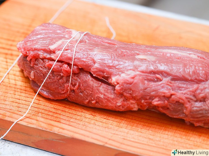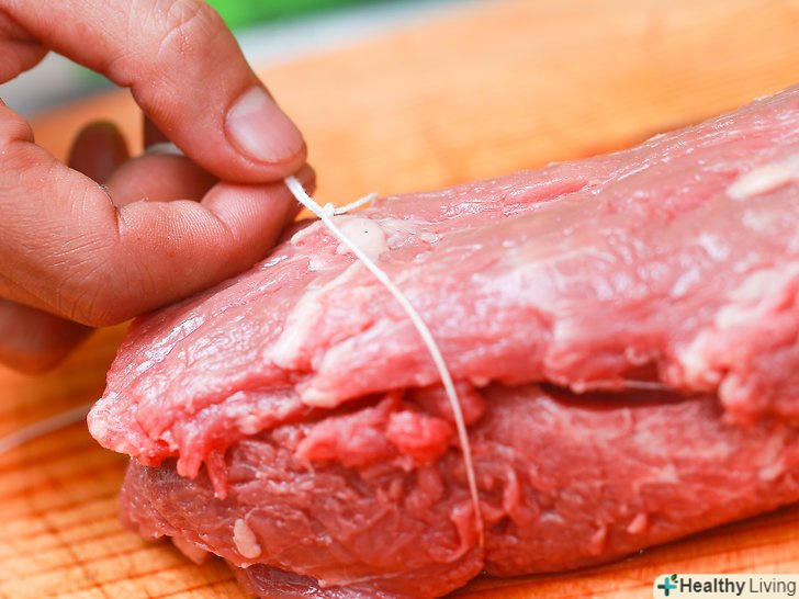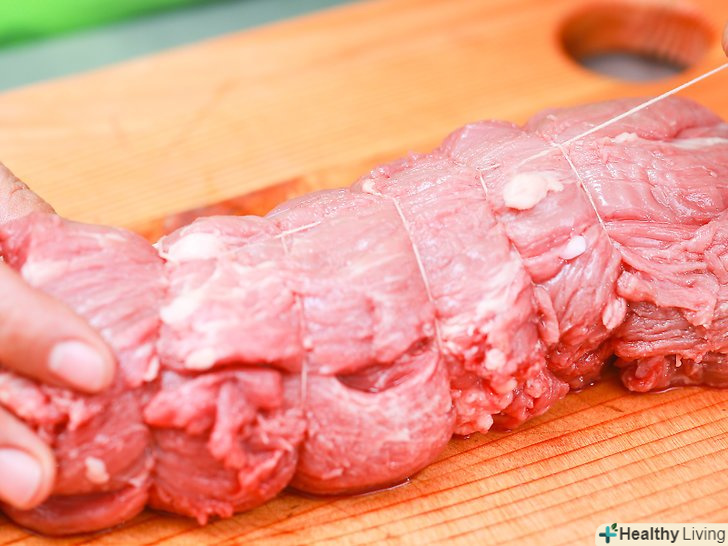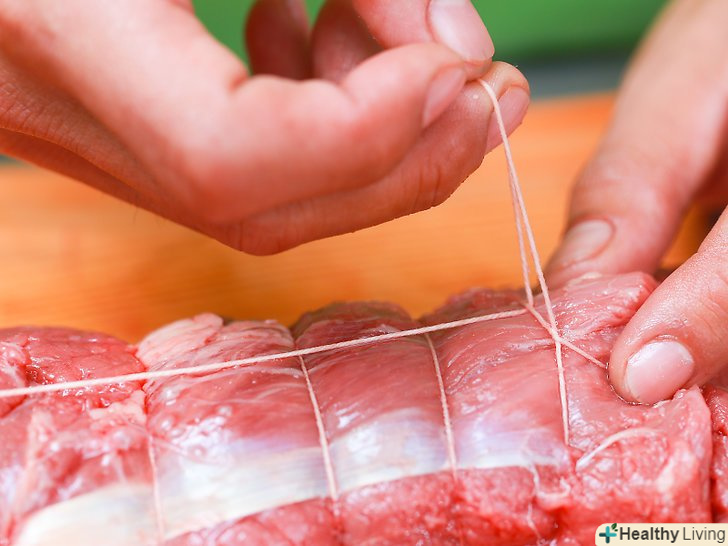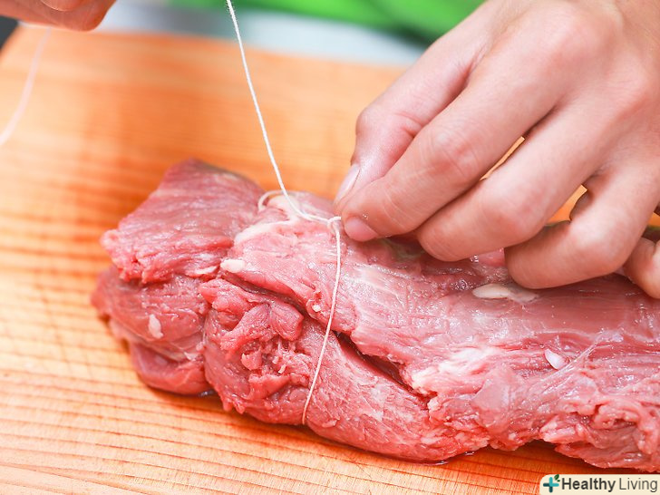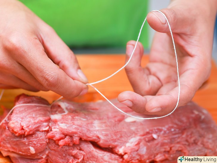 Перш за все, підготуйте довгий шматок м'ясного шпагату.М'ясницький шпагат підійде для стягування вирізки найкраще, хоча і бавовняні корди (як для повітряних зміїв) теж цілком згодяться..