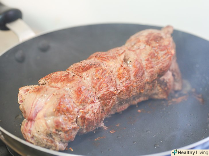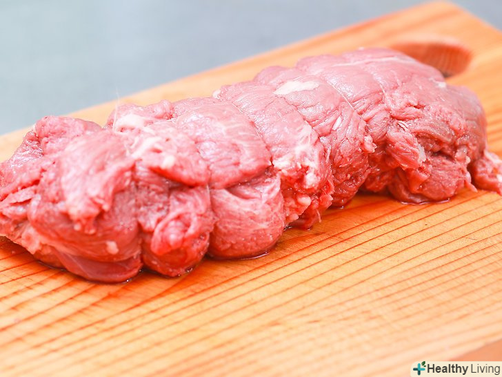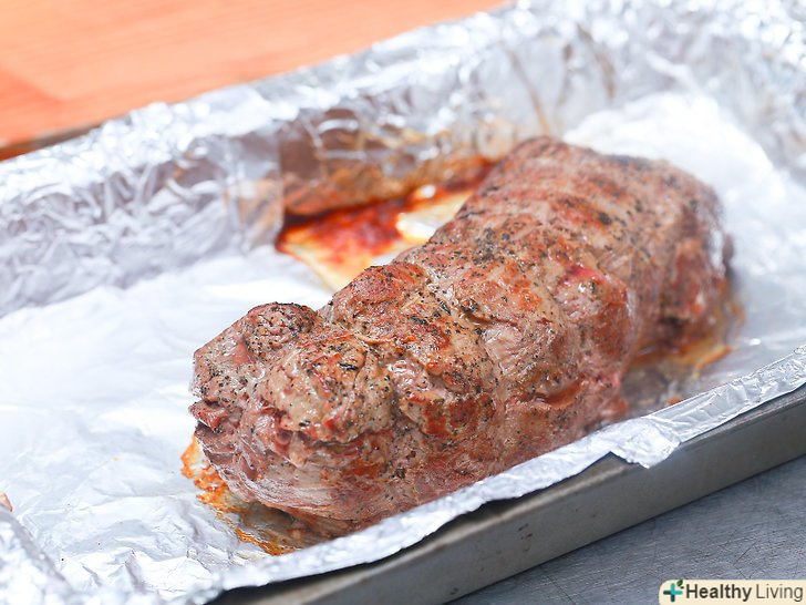 Нехай температура вирізки зрівняється з кімнатною.якщо ви тільки що купили вирізку, покладіть її в прохолодне місце на кухні. М'яса з холодильника зазвичай потрібно 3-60 хвилин для того, щоб його температура зрівнялася з кімнатної. Такому м'ясу зазвичай потрібно менше часу для приготування, також його легше готувати, так як м'ясо зовні не висохне під час приготування м'яса зсередини.[7][8]