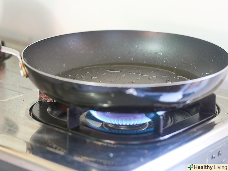 Поки розігрівається духовка, помістіть велику сковороду з довгою ручкою на невеликий вогонь на плиту.налийте на розігріту сковороду трохи рослинного масла і почекайте, поки масло не почне диміти.