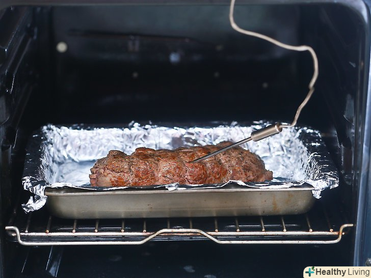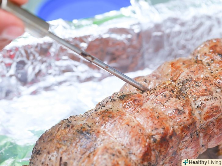 Покладіть шматочок в сотейник і вставте в м'ясо харчової термометр.кінчик термометра повинен знаходитися глибоко всередині м'яса.