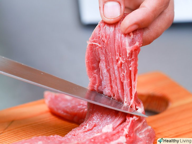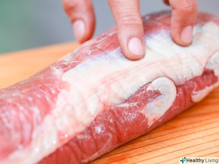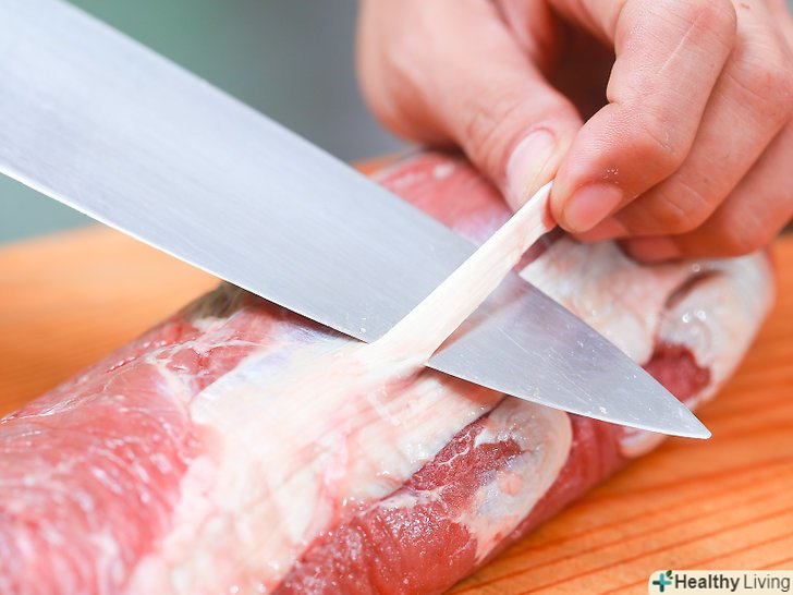 Обріжте з вирізки зайвий жир і насіннєву оболонку.знову ж таки, купіть готовий шматок, зі зрізаним жиром і насіннєвий оболонкою, якщо ви хочете трохи спростити своє життя, або якщо ви ніколи раніше самостійно цим не займалися. Якщо ви не знаєте що робите, даний процес може бути досить підступним.- На шматку вирізки просто вріжіться в жир або насіннєву оболонку. Підніміть рукою шматок і почніть відрізати все більше і більше, продовжуючи піднімати пласт жиру і насіннєвої оболонки. Продовжуйте до тих пір, поки не видалите весь видимий жир і насіннєву оболонку.