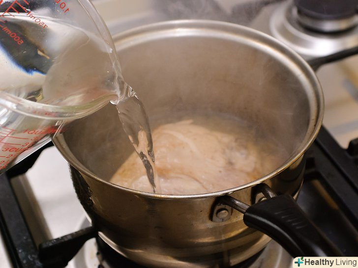 Покрийте курячі спинки водою і доведіть до кипіння.наповніть каструлю водою, щоб вона покривала курячі спинки приблизно на 2,5 см.включіть сильний вогонь і доведіть воду до кипіння.