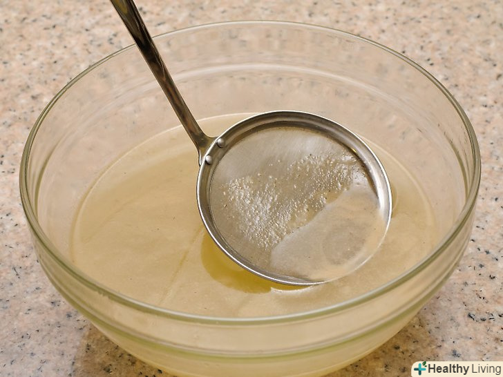 Зніміть жир.накрийте миску з бульйоном і поставте на 1-2 години в холодильник. Коли він охолоне, жир підніметься на поверхню. Зніміть його ложкою, перш ніж використовувати або зберігати бульйон.