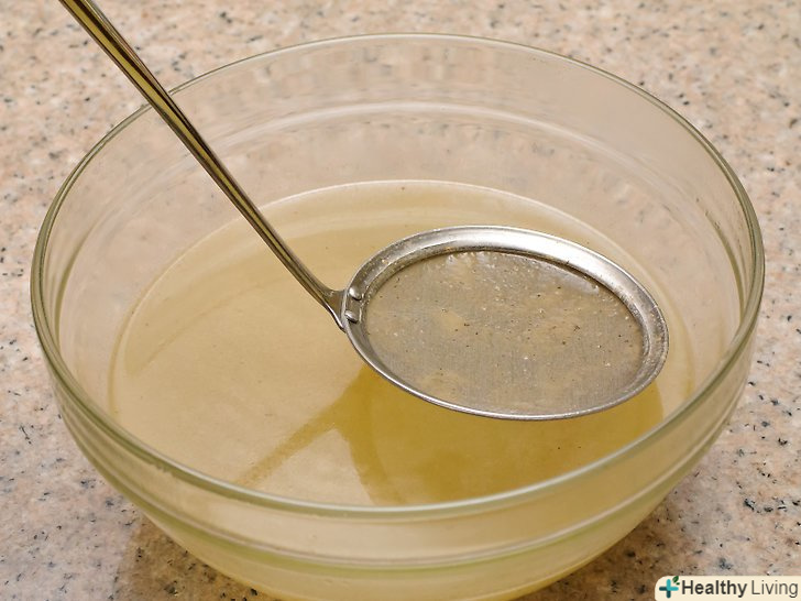 Зніміть жир.якщо хочете, накрийте миску з бульйоном і поставте в холодильник. Коли бульйон охолоне, зніміть жир ложкою і викиньте.