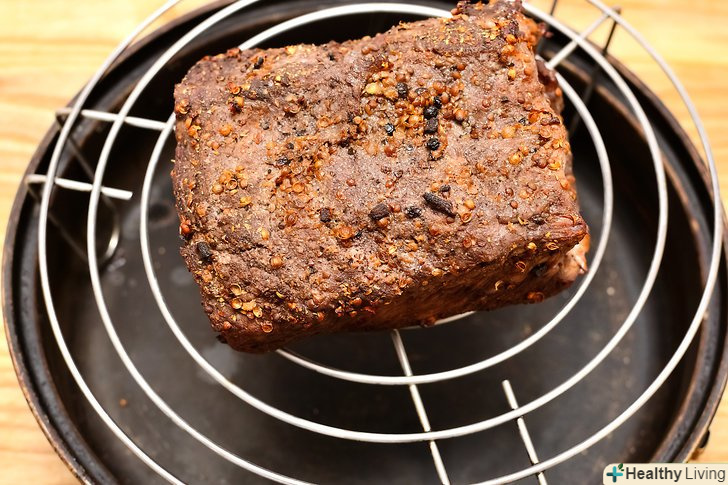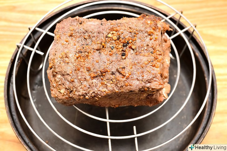 - Немає необхідності розрізати м'ясо, щоб перевірити його готовність. Вставте в центр шматка термометр для м'яса; це набагато більш точний спосіб визначення готовності. Внутрішня температура повинна бути не менше 60 градусів за Цельсієм.[4]