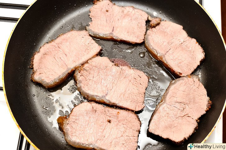Обсмажуйте до золотистого кольору.це повинно зайняти близько 3-4 хвилин. Оскільки м'ясо приготовлено, вам потрібно всього лише злегка його обсмажити.- Слідкуйте за процесом, щоб не допустити загоряння. Коли з м'яса починає виділятися жир, виникає ризик загоряння, особливо якщо ви використовуєте замість каструлі для гриля деко. Проте, так як пастрамі готується швидко, ризик цей дуже малий.