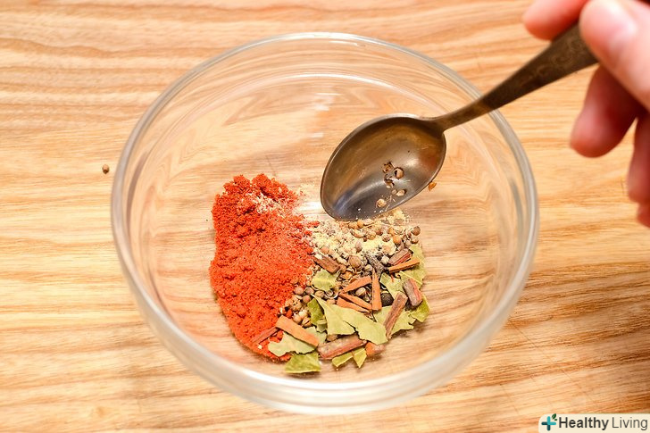 Змішайте мелене насіння з іншими спеціями.перемішайте в невеликій мисці подрібнений перець, насіння гірчиці і насіння коріандру з пластівцями червоного перцю, горошком запашного перцю, меленим мускатним горіхом, подрібненими паличками кориці, подрібненими лавровим листям, гвоздикою і меленим імбиром.- Переконайтеся, що суміш спецій рівномірна.
