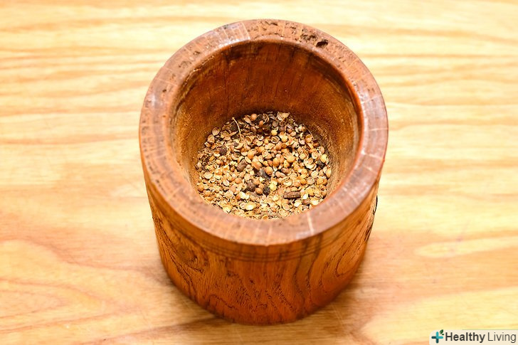 Подрібніть насіння.перекладіть перець, насіння гірчиці і насіння коріандру в ступку і роздушіть в порошок товкачем.- Якщо у вас немає ступки і маточки, ви також можете розмолоти спеції в кавомолці або розчавити бічною частиною ножа.