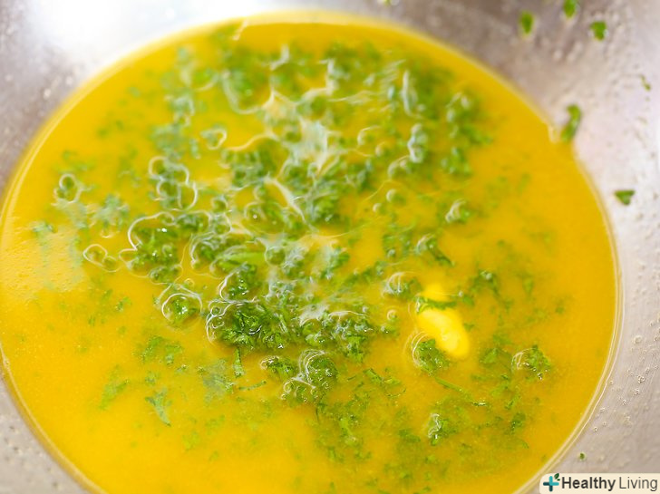 Розтопіть вершкове масло в невеликій каструлі на середньому вогні.нагрійте 60 грам несолоного вершкового масла в невеликій каструлі, зніміть каструлю з вогню, додайте і перемішайте 3 столові ложки подрібненої петрушки. Відставте суміш масла і петрушки в сторону.