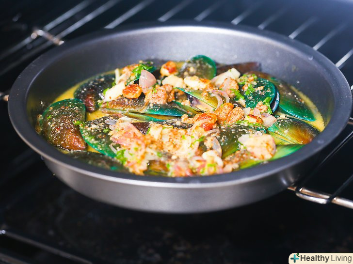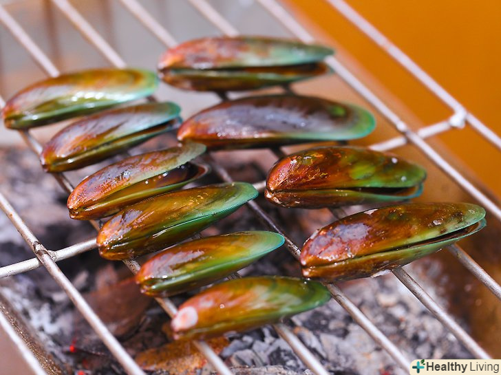Зберіть інгредієнти.для мідій, запечених на грилі, вам знадобиться:- 1 кг 360 грам мідій, помитих і почищених
