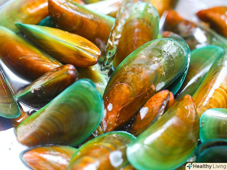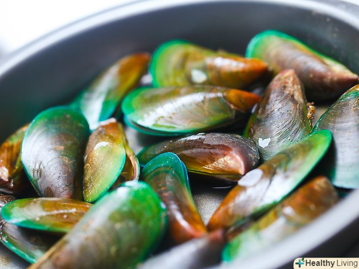 Потріть, помийте Мідії і видаліть з них волокнисті нитки (бороди ).після миття мідій дайте воді стекти.[5]