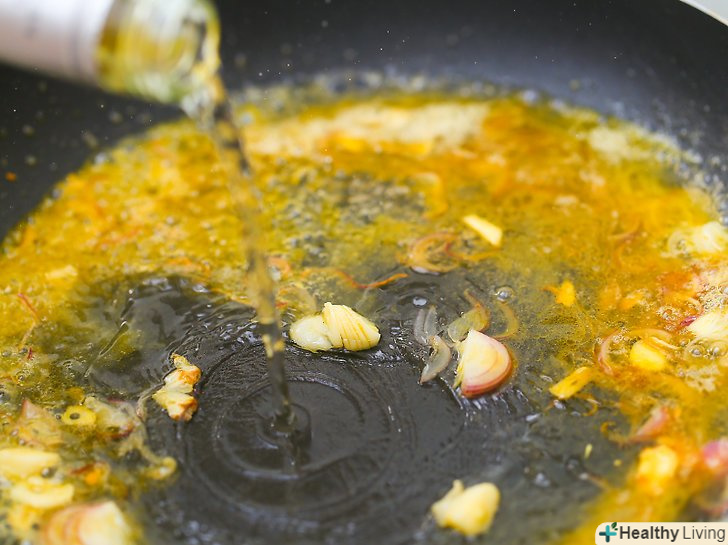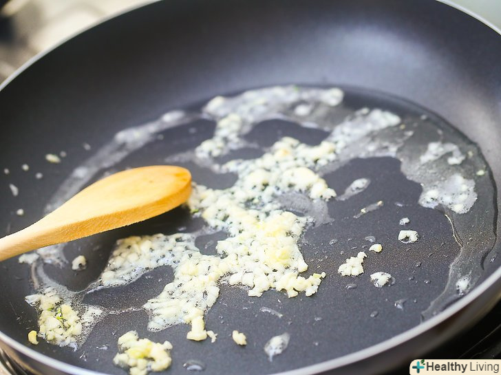 Швидко обсмажте 5 часточок подрібненого часнику в 2 столових ложках оливкової олії протягом 30 секунд на сильному вогні.