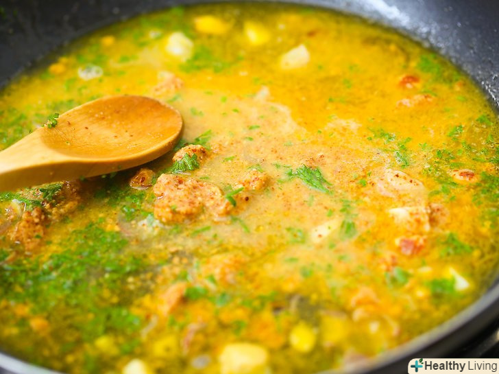 Налийте бульйон і покладіть спеції у велику каструлю.Налийте 1/2 склянки (125 мл) сухого білого вина, 1 стакан (250 мл) курячого бульйону в каструлю. Обсмажте на сильному вогні 1 подрібнену цибулю-шалот, 2 зубчики часнику, 4 гілочки свіжого чебрецю в 2 столових ложках оливкової олії в окремій сковороді протягом 2-3 хвилин, потім додайте ці інгредієнти в каструлю.[2]