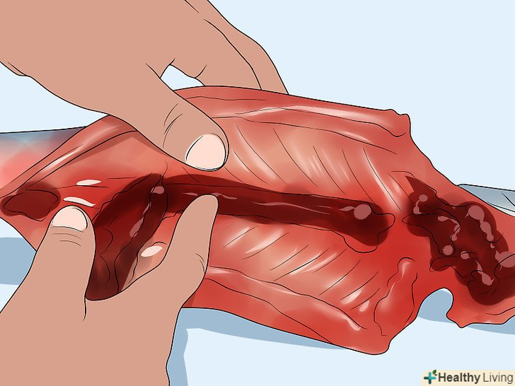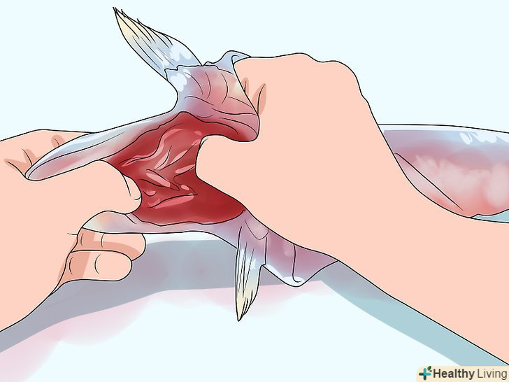 Зіскобліть при наявності всі частини внутрішньої мембрани, яка темного кольору.не у всіх риб є цей тонкий шар в черевній порожнині, але якщо він є, то потрібно його видалити. Він має сильно виражений смак жиру і риби, так що навряд чи вам буде приємно виявити це під час прийому їжі.[7]