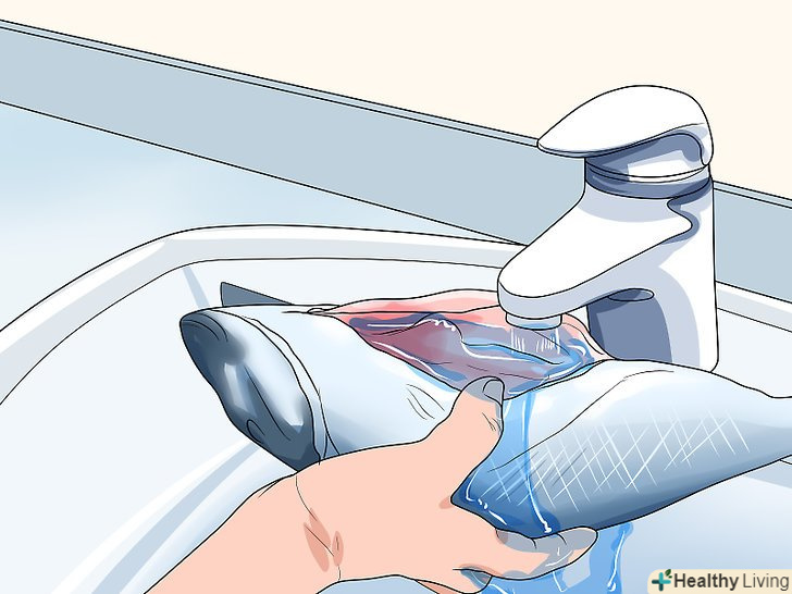 Промийте в прохолодній воді рибу всередині і зовні.вимийте рибу зовні, позбувшись від усіх прилиплих лусочок, а також всередині, щоб не залишилося дрібних шматочків і крові. Тепер можна приступати до приготування риби![9]- Промивайте рибу якомога меншою кількістю води, щоб зберегти смак риби. Деякі вважають за краще акуратно протирати рибу паперовим рушником, а не промивати її.