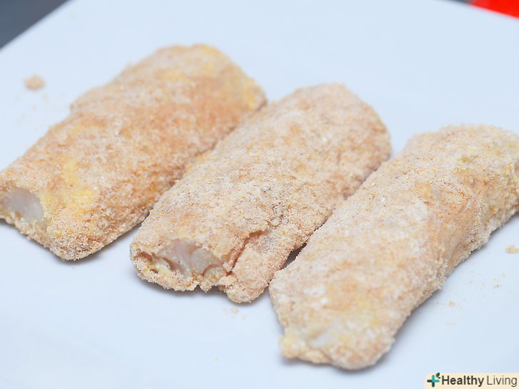 Обваляйте просочене молоком філе в суміші борошна.переверніть філе кілька разів так, щоб кожна сторона повністю покрилася кукурудзяним борошном.