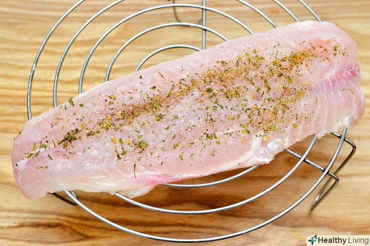 Підготуйте філе морського окуня або маринуючи 1-2 години перед приготуванням або натираючи рибу улюбленими приправами.