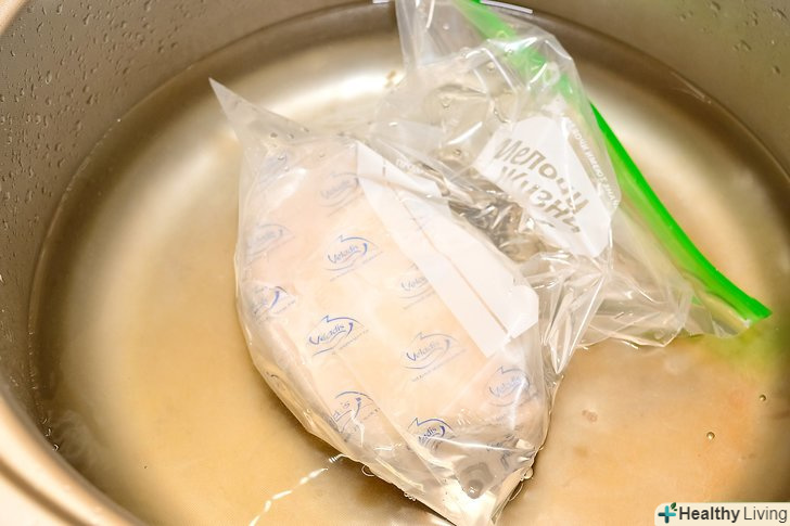 Розморожуйте в холодній воді.якщо ви не бажаєте чекати, поки риба буде розморожуватися, то помістіть її в пакет із застібкою і покладіть в холодну воду.[8] Півкілограмової риби для розморожування потрібно близько 1-2 годин.- Щоб уникнути розмноження бактерій ніколи не користуйтеся теплою водою або водою кімнатної температури.