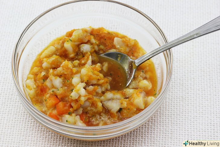 Додайте риб'ячий сік.як тільки всі інгредієнти будуть ретельно змішані, додайте сік риби або молюсків. Ретельно перемішайте ложкою.