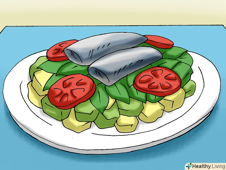 Додайте сардини в салат.сардини здатні надати додаткову нотку смаку будь-якого салату! Додайте їх у свій улюблений салат або наріжте сардини, апельсини, оливки і зварені круто яйця і перемішайте їх з листям латуку. Зверху додайте просту заправку і насолоджуйтеся смачним блюдом![2]