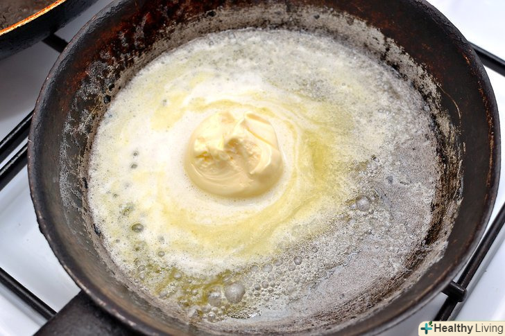 Доведіть масло до кипіння в літровій сковороді на середньому вогні.зніміть з вогню і ложкою зніміть і викиньте піну, залишаючи решту масла в сковороді.