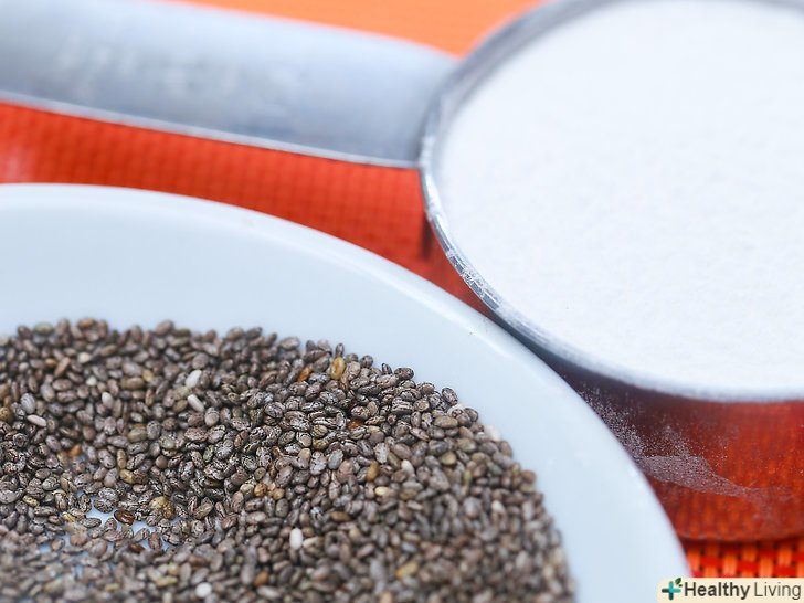 - Змішайте 1 столову ложку насіння Чіа і 3 столові ложки води, щоб замінити одне яйце. Дайте суміші постояти протягом 30 хвилин, поки вона не загусне і не стане схожою за консистенцією на желе.[30]