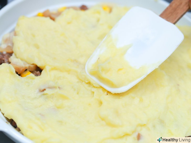 В якості сполучного інгредієнта візьміть крахмалосодержащие продукти, такі як картопляне пюре, варений рис, панірувальні сухарі або вівсяна каша. [33] ці продукти особливо підходять для приготування пряних страв, наприклад, м'ясного рулету, овочів або бургерів. Вам доведеться поекспериментувати, щоб визначити відповідну кількість замінників для вашого рецепту, щоб страва стала кулінарним шедевром.- Додайте 2-3 столові ложки картопляного пюре, щоб замінити 1 яйце. Для цієї мети допускається використання швидкорозчинного пюре і солодкої картоплі.[34]