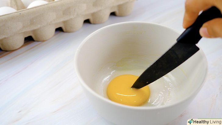 - Відокремте білки від жовтків.обережно розбийте яйце, роз'єднати дві половинки шкаралупи так, щоб яйце залишилося в одній половинці. Перелийте яйце з однієї половинки шкаралупи в іншу, до тих пір поки жовток не відокремиться від білка. Помістіть білок в одну миску, а жовток - в іншу. Якщо ви готуєте два яйця і більше, повторіть цю процедуру, поміщаючи білки в одну миску, а жовтки в іншу.