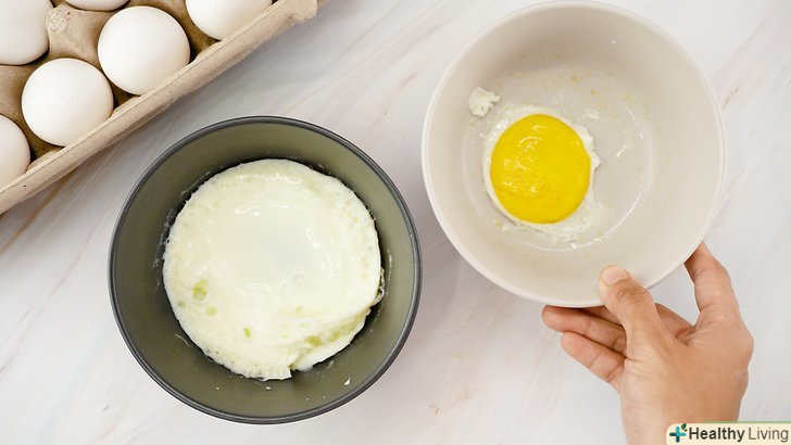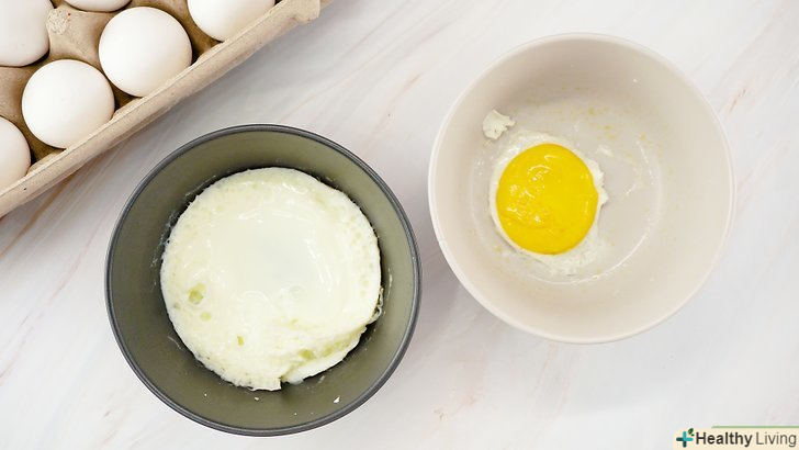 - Якщо дане заняття здається вам надмірно виснажливим, просто розбийте ціле яйце в одну миску. Пам'ятайте, це може призвести до того, що білки можуть виявитися недовареними, а жовтки стануть перевареними і "гумовими", оскільки ці дві частини яйця готуються в мікрохвильовій печі по-різному.[9]