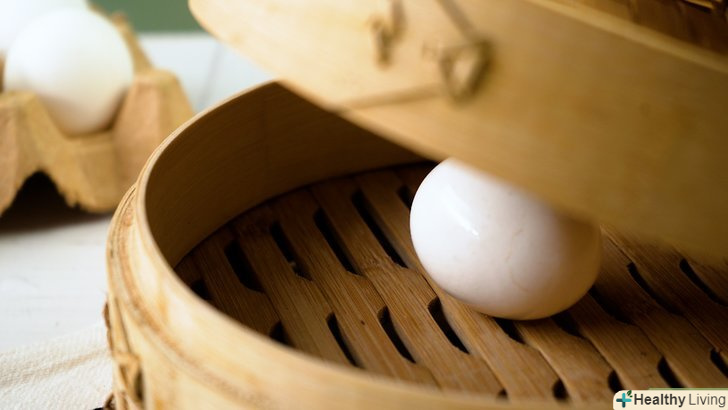 Зваривши свіжі яйця (які пролежали в холодильнику 1-2 дні), вам буде складно очистити їх, так як плівка пристане до білка.[12] тому краще варити яйця, що пролежали в холодильнику 7-10 днів. Але якщо ви варите свіжі яйця, перед варінням потримайте їх над парою, щоб відокремити плівку від білка.- Покладіть яйця в металевій друшляк, який потримайте над каструлею з киплячою водою (протягом 10 хвилин). При цьому часто перевертайте яйця. Потім зваріть яйця так, як описано в попередніх розділах.[13]