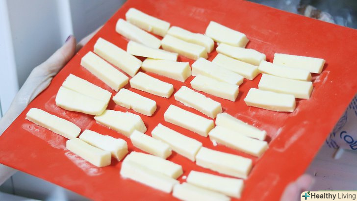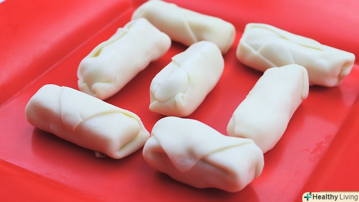 Покладіть палички сиру в морозильну камеру. Сир повинен повністю затвердіти.- Дістаньте з морозильної камери.оберніть тонким тестом наступним чином: