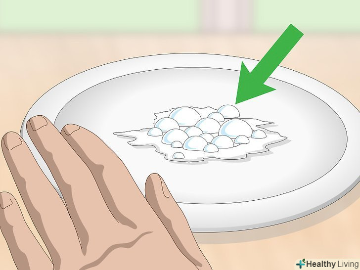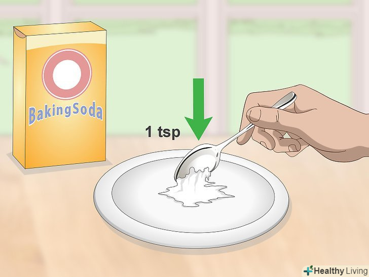 Насипте 1 чайну ложку (10 грам) харчової соди в блюдце.для цього тесту не потрібна велика кількість соди, просто стільки, щоб ви змогли побачити її реакцію на молоко. Переконайтеся, що випічка соди свіжа. В іншому випадку вона може не дати реакції.[10]- В цілому, не використовуйте харчову соду для цього тесту, якщо закінчився термін придатності на упаковці.