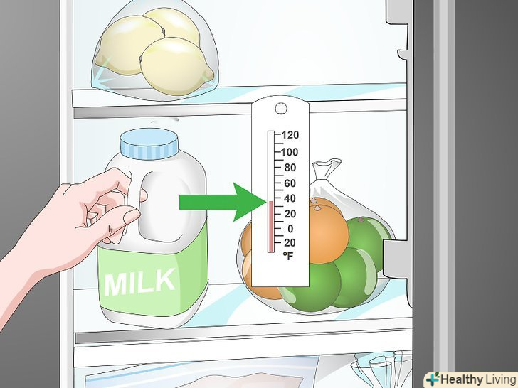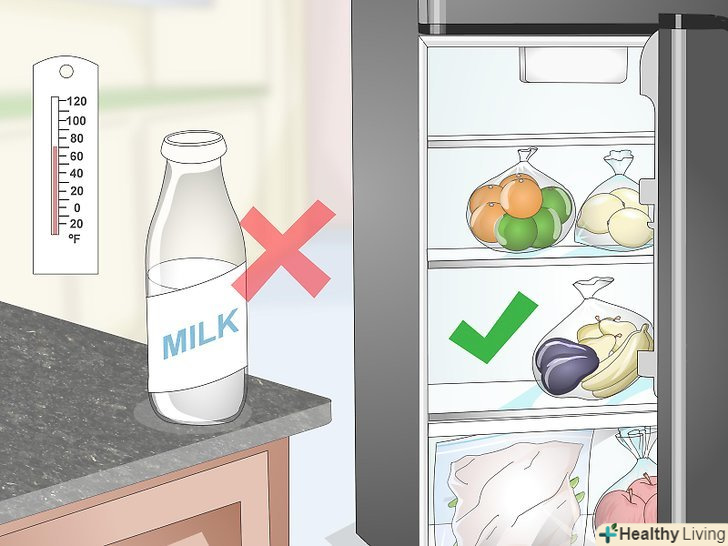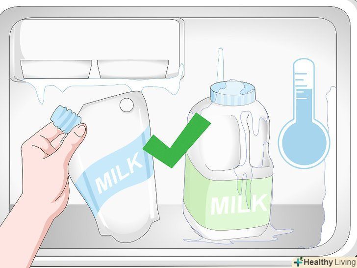 Зберігайте молоко при температурі нижче 4 градусів Цельсія.молоко весь час має зберігатися в холодильнику. Якщо залишити упаковку на столі при кімнатній температурі протягом тривалого періоду часу, продукт зіпсується швидше.[13]- Якщо молоко буде зберігатися в задній частині холодильника, воно точно залишиться холодним. Якщо ви тримаєте молоко в дверцятах холодильника, воно буде часто піддаватися впливу різних температур, коли дверцята буде відкриватися і закриватися. Це може скоротити термін його придатності.