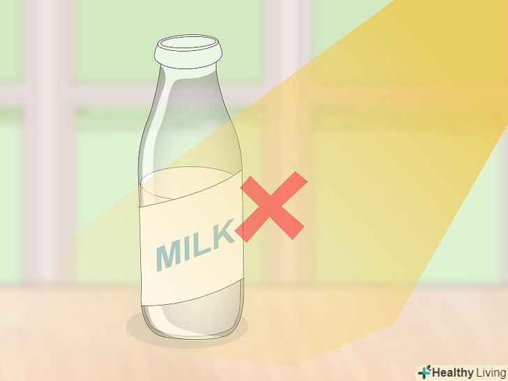 Не піддавайте молоко впливу світла.молоко з прозорої, скляної або пластикової упаковки зберігається не так довго, як молоко в картонній або кольоровій пластиковій ємності. Молоко псується при впливі світла, і навіть тимчасовий вплив через відкриття і закриття дверцят холодильника з плином часу зменшить термін придатності продукту.[14]- Якщо молоко знаходиться в прозорій упаковці, зберігайте його в задній частині холодильника" під захистом " інших предметів, щоб скоротити вплив світла.
