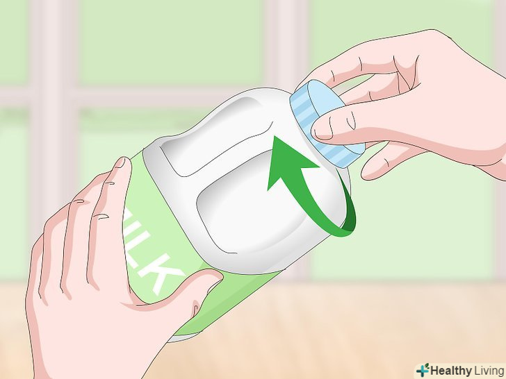 Щільно закривайте упаковку з молоком.свіже молоко, яке піддається впливу повітря, може зіпсуватися, навіть якщо воно зберігається належним чином. Переконайтеся, що кришка щільно закручена. У більшості випадків молоко слід залишати в оригінальній упаковці, яка призначена для його зберігання.[15]- Якщо оригінальна упаковка пошкоджена, перелийте молоко в глечик або іншу ємність з надійною кришкою. Не залишайте молоко у відкритому глечику або склянці, навіть якщо ви зберігаєте його в холодильнику. Перепишіть дані з вихідної упаковки на нову.