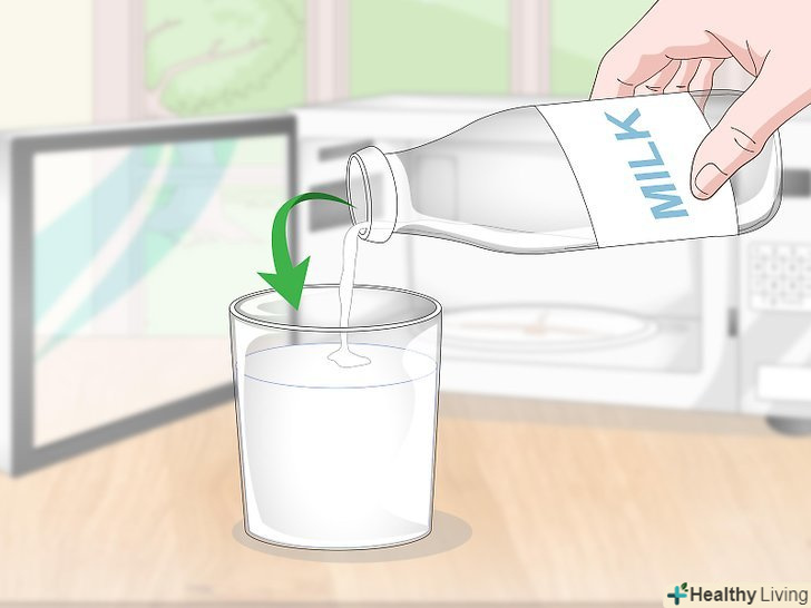 Налийте молоко в стакан, придатний для використання в мікрохвильовій печі.якщо ви вивчили молоко і все ще не впевнені, прокисло воно чи ні, можете перевірити його. Налийте невелику кількість молока в чисту склянку на висоту приблизно 2,5 см.[7]- Перевіряйте лише невелику кількість, щоб можна було використовувати молоко, що залишилося, якщо воно все ще хороше.