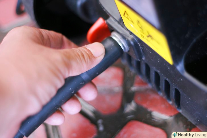 Підготуйте мийку до використання.- Заправте мийку паливом і маслом. Візьміть пусковий стартер і потягніть на себе для того, щоб завести двигун мийки.