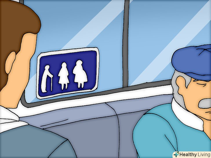 Шукайте місця, розроблений спеціально для інвалідів. коли метро заповнюється, всі місця займають, а стоять пасажири здавлені в одне ціле, не забувайте про інвалідів і вагітних жінок, яким слід надати такі місця. Так що, постарайтеся не займати такі місця або приготуйтеся до того, щоб поступитися таким людям. Не чекайте прохання.