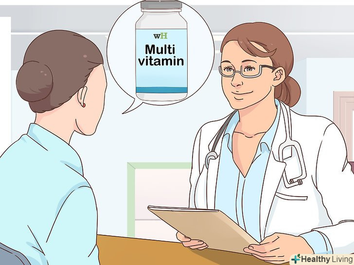 Дізнайтеся у лікаря, які мультивітаміни вам можна приймати.високий рівень аміаку свідчить про те, що ваш організм працює неправильно. Через брак вітамінів і мінералів це може привести до розвитку ряду проблем зі здоров'ям. Щоб усунути ці ризики, проконсультуйтеся з лікарем з приводу щоденного прийому мультивітамінів, які забезпечать вас необхідними поживними речовинами.- Лікар повинен схвалити ваш вибір мультивітамінів і дозування, щоб знизити ймовірність прийому речовини, яка може негативно позначитися на роботі вашої печінки і рівні аміаку. Наприклад, високі дози вітаміну А призводять до гепатоксичності (токсичність для печінки).[19]